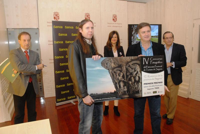 El presidente de la Diputación, Francisco Vázquez, acompañado por el diputado de Cultura, José Carlos Monsalve; la directora de la oficina de Fernández Ladreda de Bankia, Cristina Geijo; y la gerente del Patronato de Turismo, Sofía Collazo, entregaron hoy los premios a los ganadores del IV Concurso de Fotografía del Patronato de Turismo, que este año estaba dedicado al Románico.
